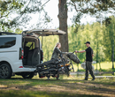 Thule VeloSpace 3 supports wheelbases up to 1350 mm and individual bike weights up to 30 kg. The sturdy platform and thoughtful construction keep bikes stable on the road. The 3-bike version offers a smart tilt function that provides easy access to the trunk. The tilt angle can be changed from 50 to 65° for access to rear area on compact vans.