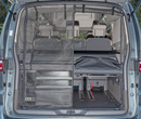 The FLEXBAG Stern can also be easily operated with the FLYOUT mosquito net for the tailgate opening installed and can also be folded up when access to the lower rear storage compartment is needed.